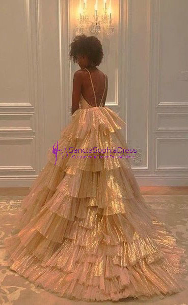 Ball Gown Prom Dress,Gold Sequins Pageant Dress