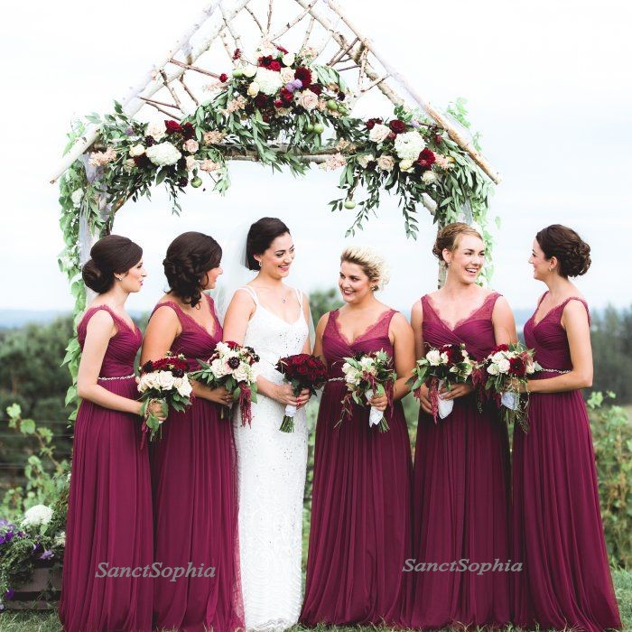 Elegant Purple V-neckline Bridesmaid Dress,V-back Prom Dress,A-line Evening Dress