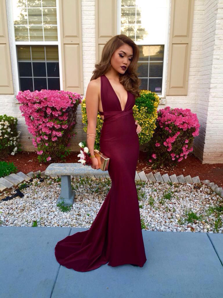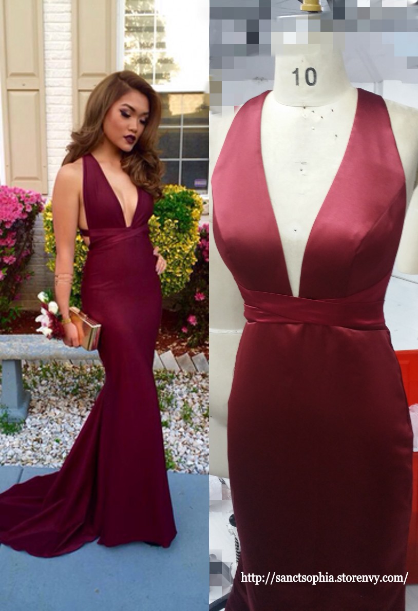 Mermaid Burgundy Prom Dress,Sexy Open Back Prom Dresses,Backless Sexy Party Dress,Burgundy Mermaid Prom Gown