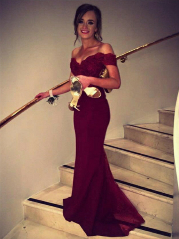 Mermaid Off Shoulder Burgundy Prom Dress,Sexy Off Shoulder Lace Prom Gown,Burgundy Lace Sexy Graduation Dress,Sexy Party Dress