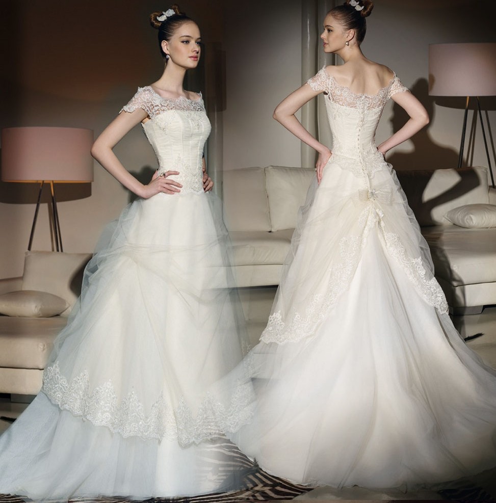 Vintage Ivory Off Shoulder Sleeves Wedding Dress