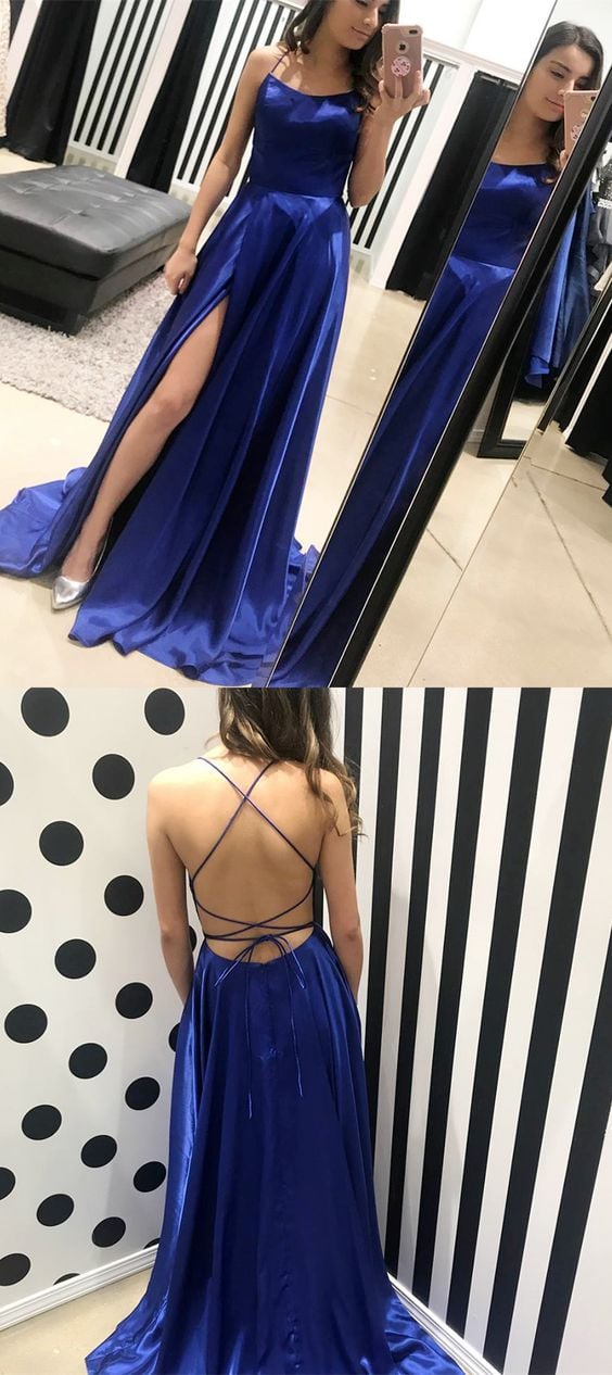 Royal Blue Prom Dress,Sexy Open Back Graduation Dress,Open Back Slit Royal Blue Evening Dress