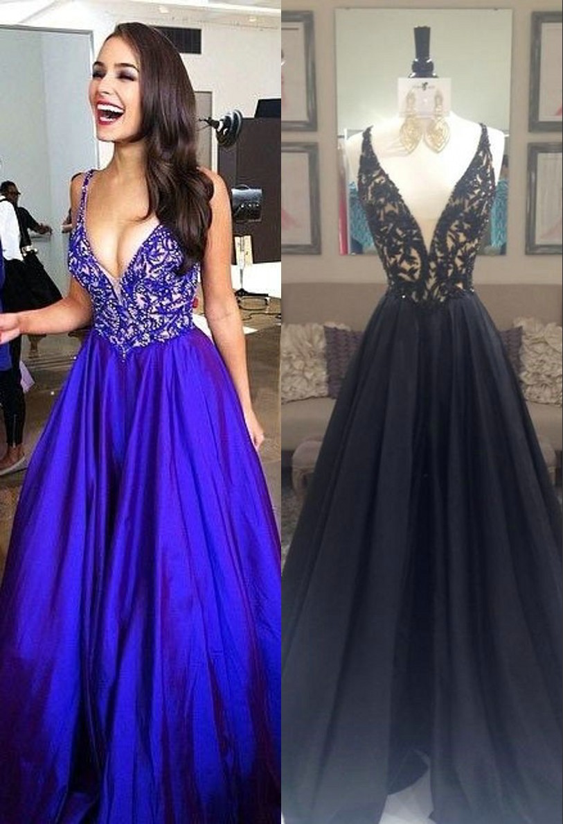 Royal Blue Prom Dress,Deep V-neckline Royal Blue Evening Dress,Sexy V-neckline Prom Dress
