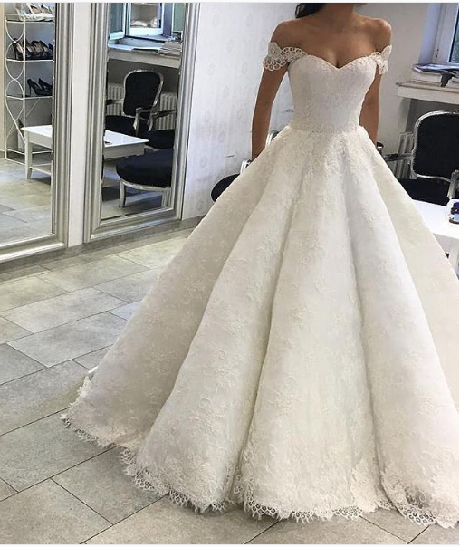 Ball Gown Off Shoulder Sleeves Ivory Lace Wedding Dress