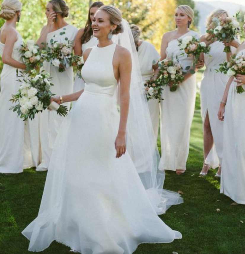 A line Halter Neckline Sexy Open Back Wedding Dress
