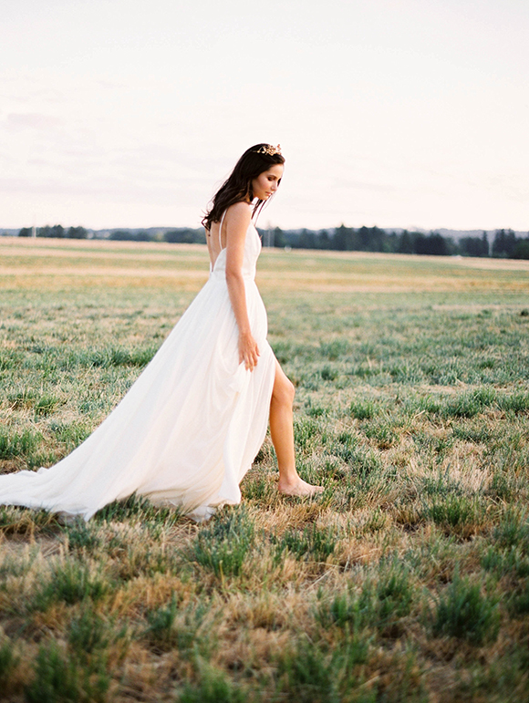 Simple A line V-neckline Chiffon Summer Wedding Dress,Split Wedding Dress