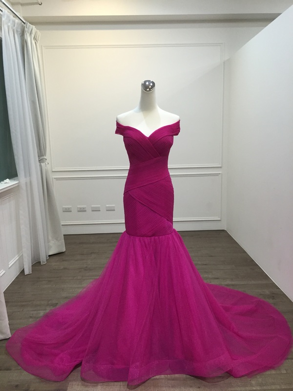 Mermaid Fuchsia Prom Dress,Off Shoulder Sleeves Evening Dress