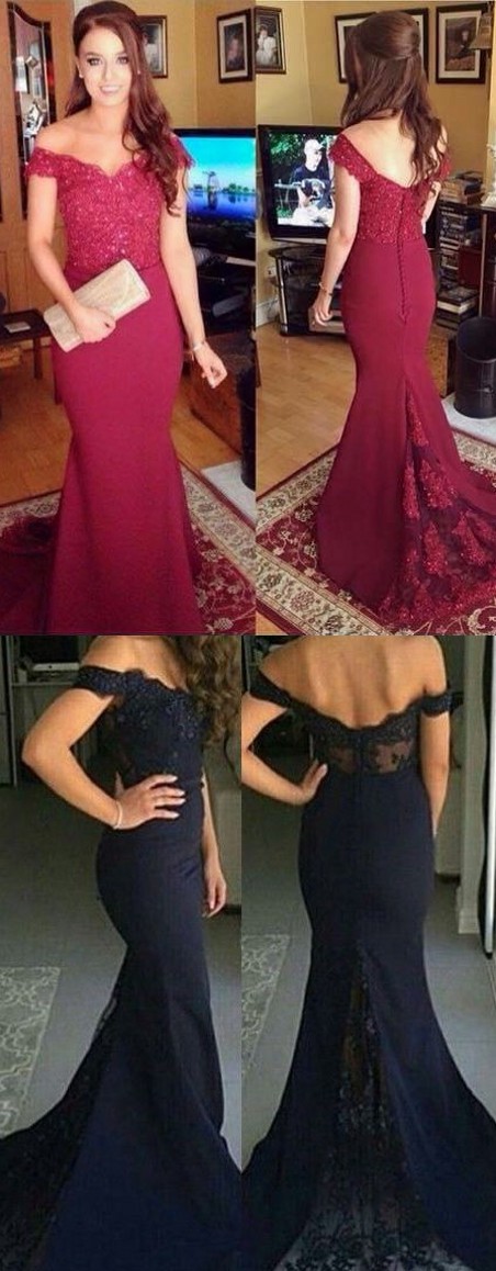 Mermaid Burgundy Prom Dress,Burgundy Lace Evening Dress,Sexy Off Shoulder Sleeves Bridesmaid Dress