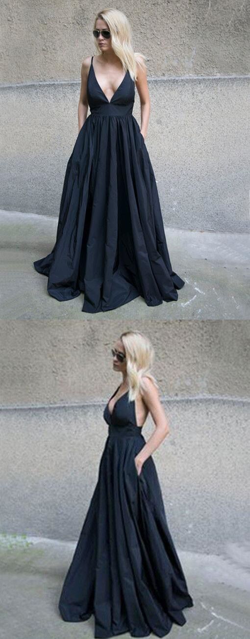 Black Prom Dress,Sexy Deep V-neckline Evening Dress,Sexy Black Graduation Dress