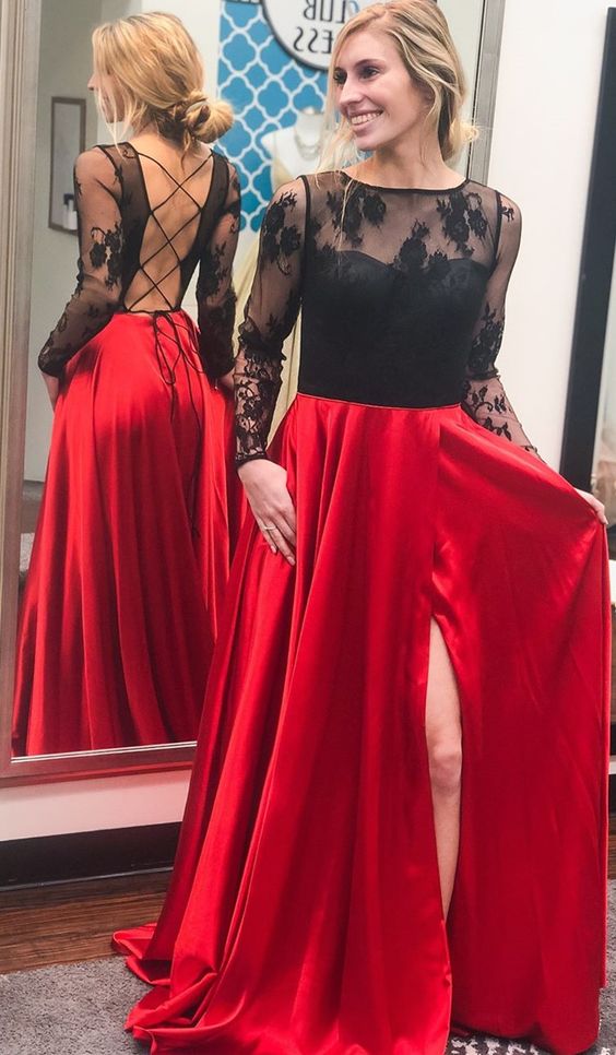 Long Sleeve Prom Dress,Sexy Slit Evening Dress