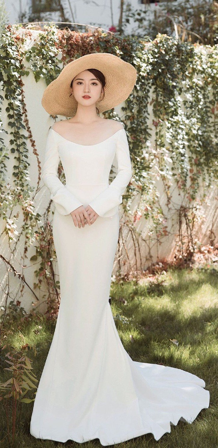 Mermaid Long Sleeve Wedding Dress,Informal Wedding Dress,Engagement Party Dress