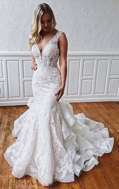Mermaid Lace Wedding Dress,Mermaid Open back Wedding Dress