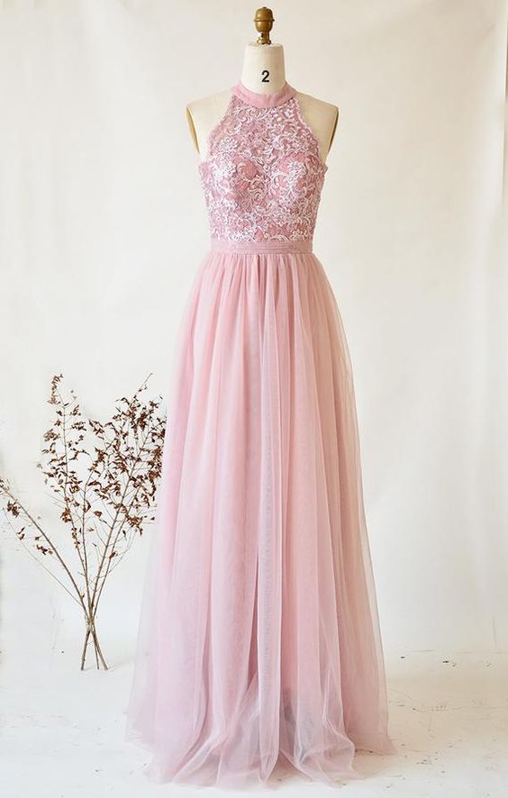 Halter Neckline Pearl Pink Bridesmaid Dress