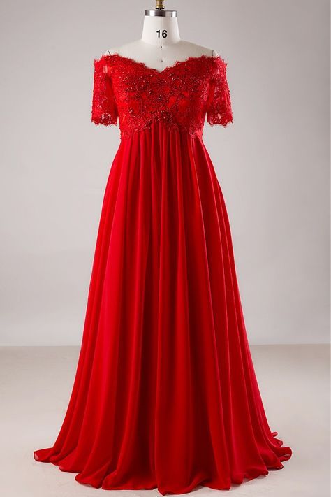 Half Sleeve Plus Size Evening Dress,Red Prom Dress