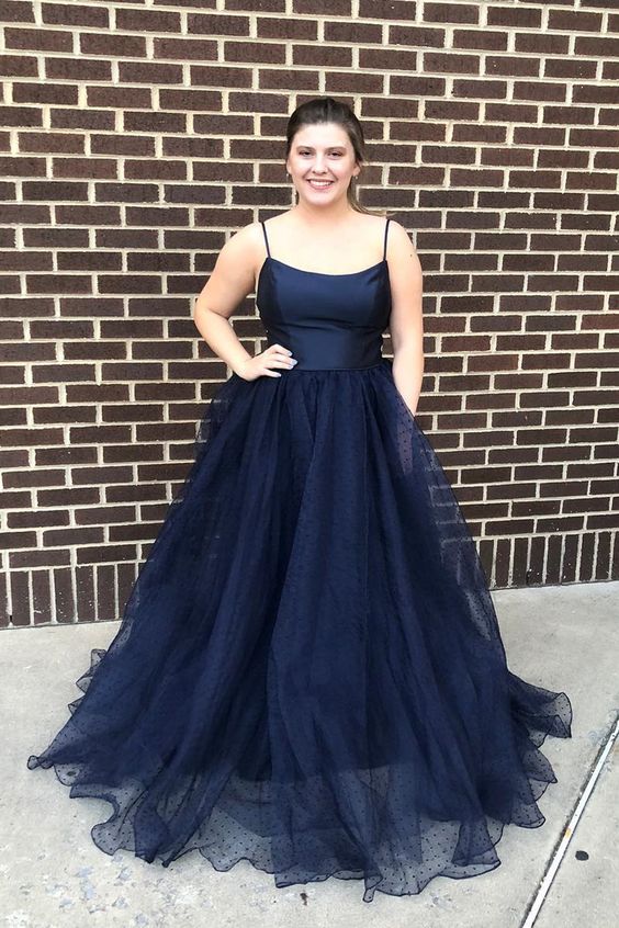 Spaghetti Straps Navy Blue Plus Size Prom Dress