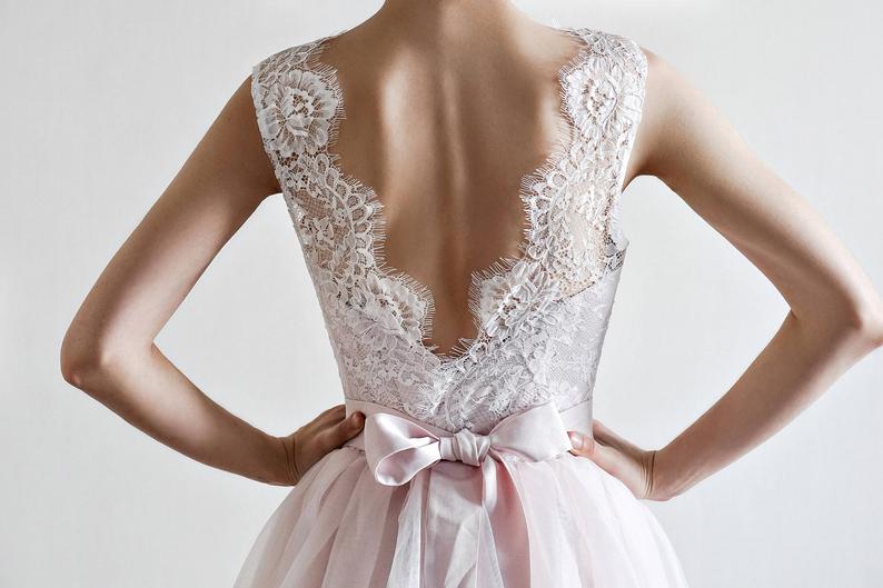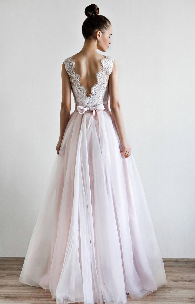 A Line V-back Wedding Dress,Blush Pink Wedding Dress