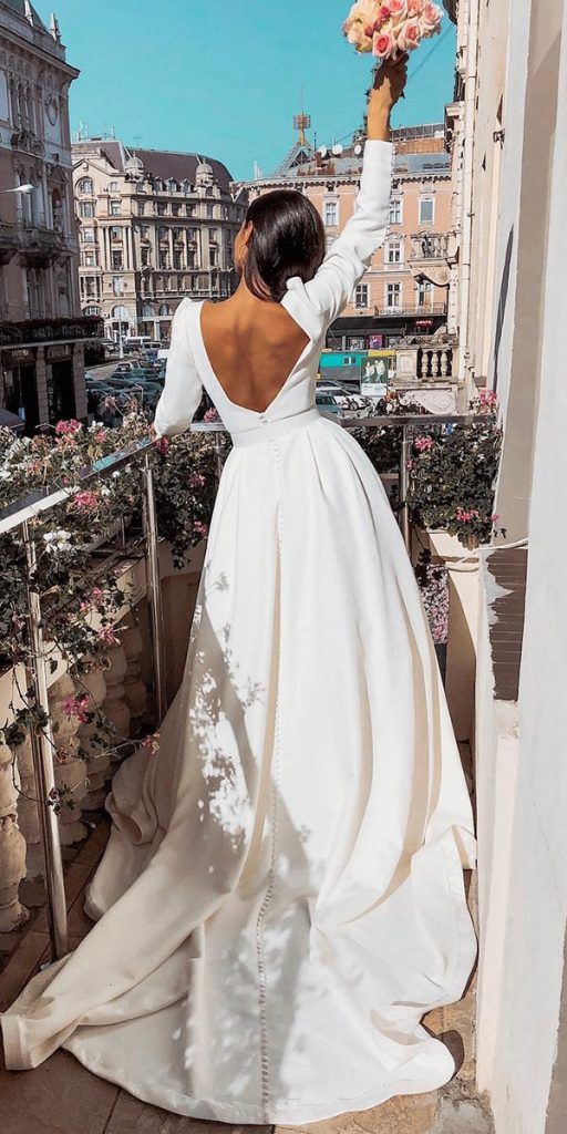 High Quality Satin Backless Long Sleeve Wedding Dress