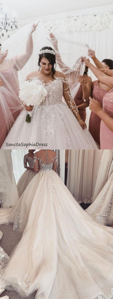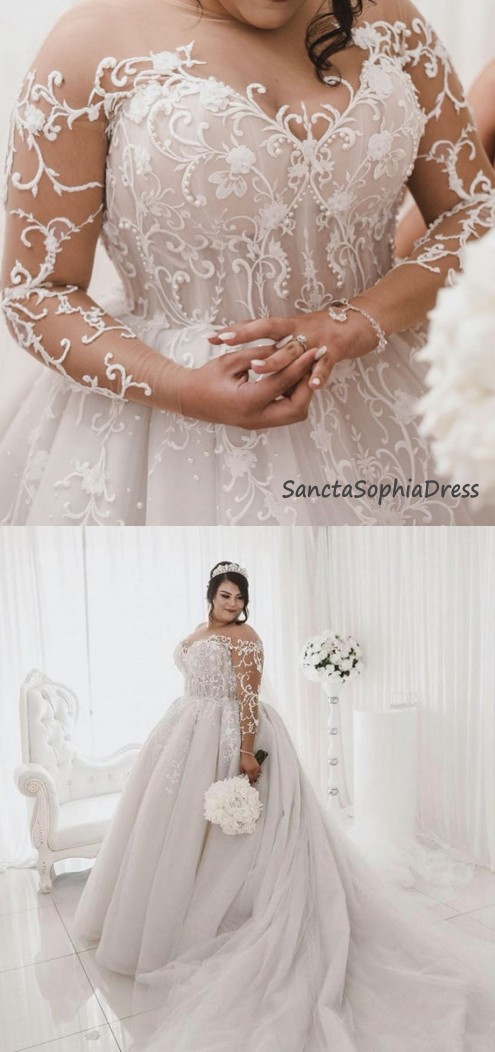 Fashion Long Sleeve Lace Plus Size Wedding Dress