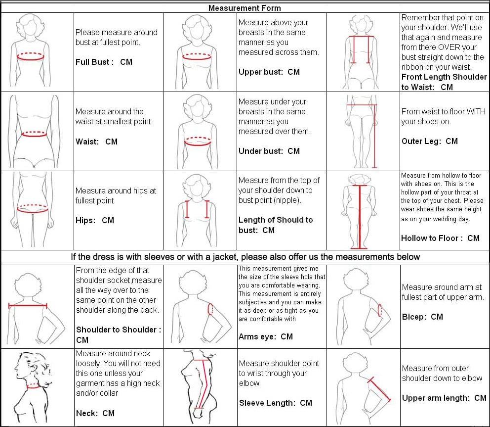 [If you choose custom the sizes,we need the below detail measurements: