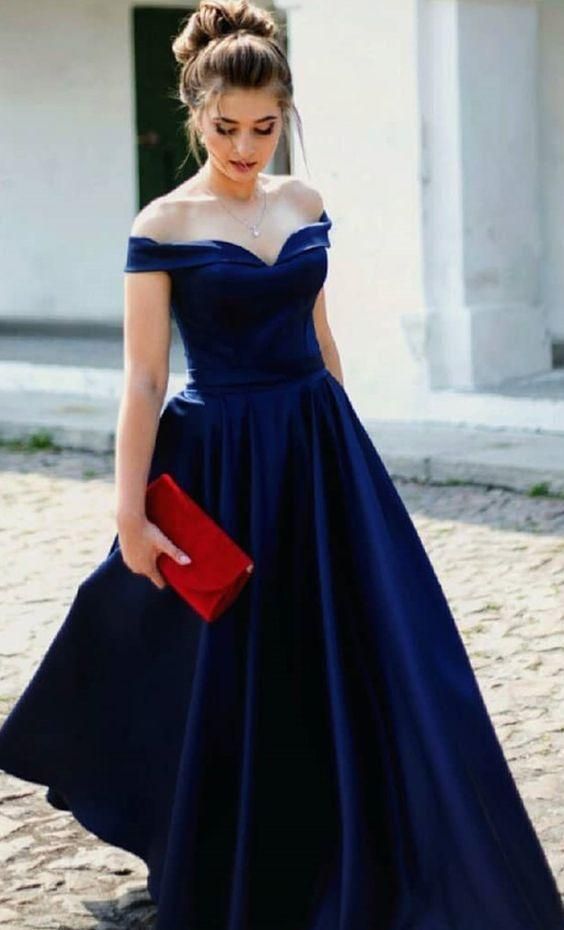 Ball Gown Off Shoulder Sleeve Navy Blue Prom Dress
