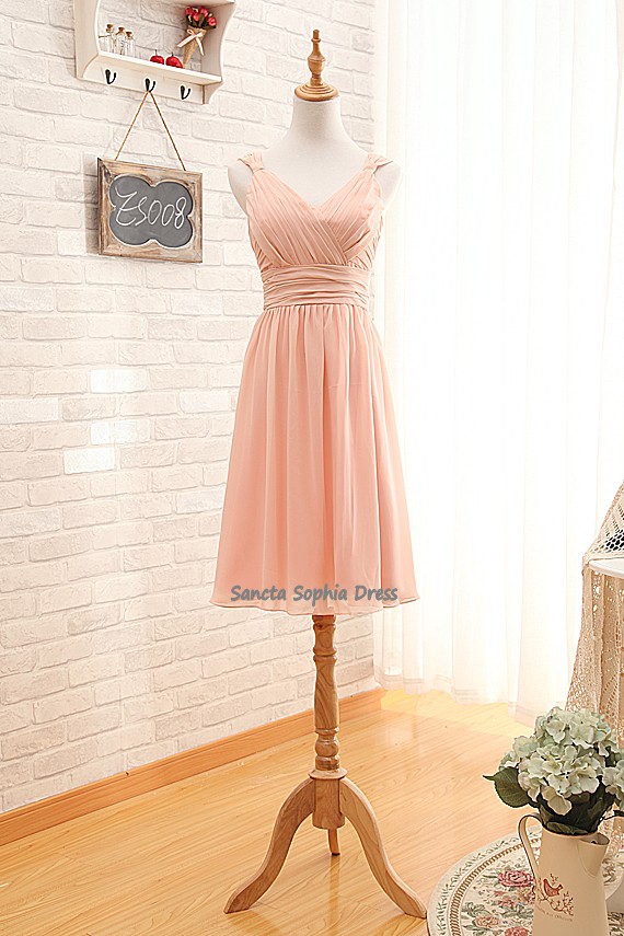 Knee Length Blush Bridesmaid Dress