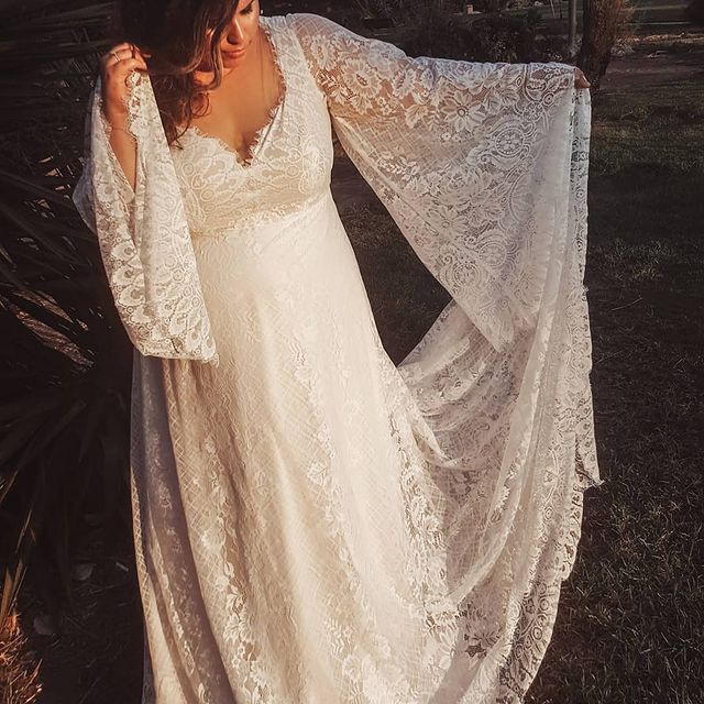 Plus Size Boho Wedding Dress,Wedding Dress for Curvy Bride,Plus Size Long Sleeves Bohemian Wedding Dress