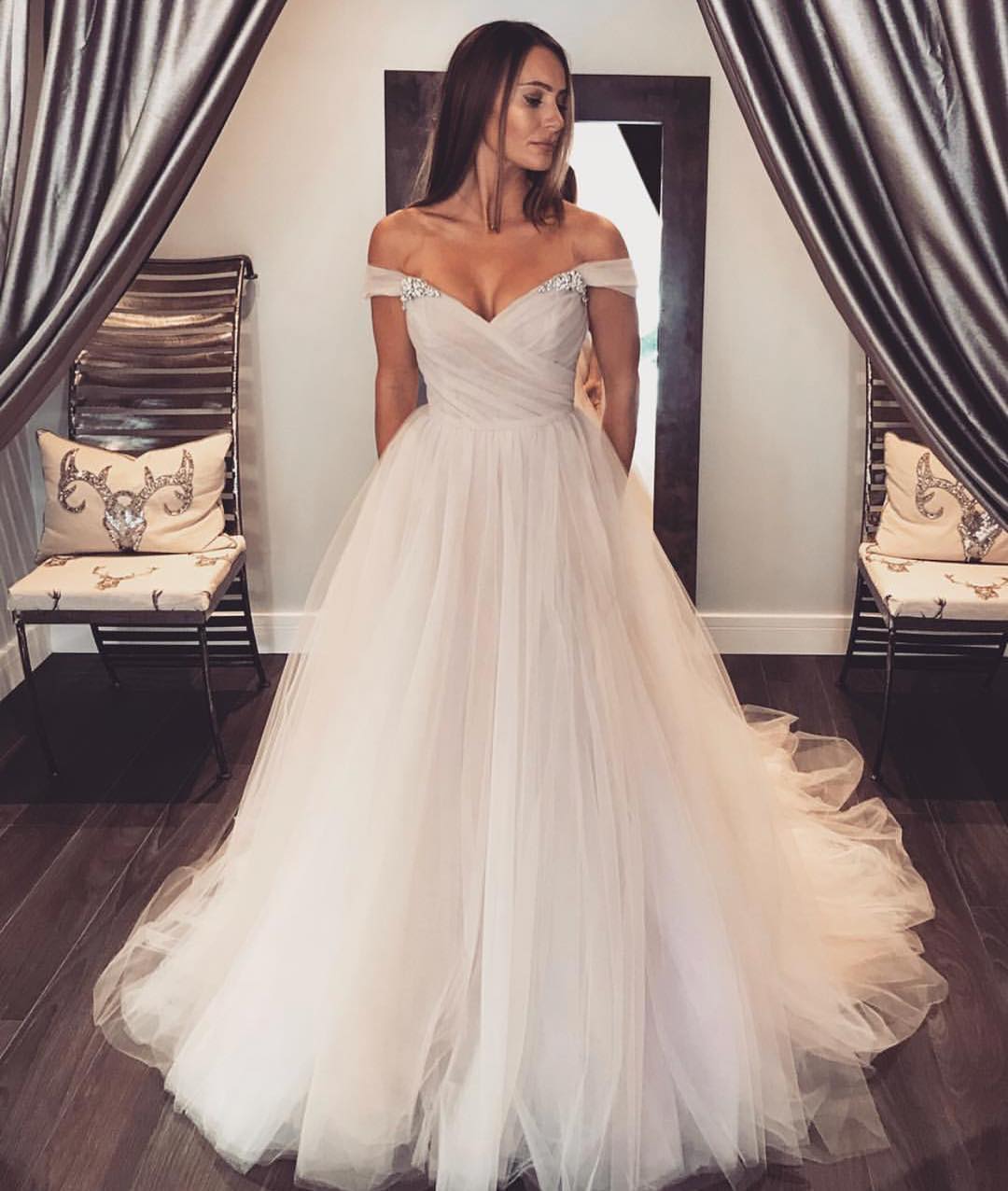 Ball Gown Off Shoulder Sleeve Wedding Dress, Blush Wedding Dress