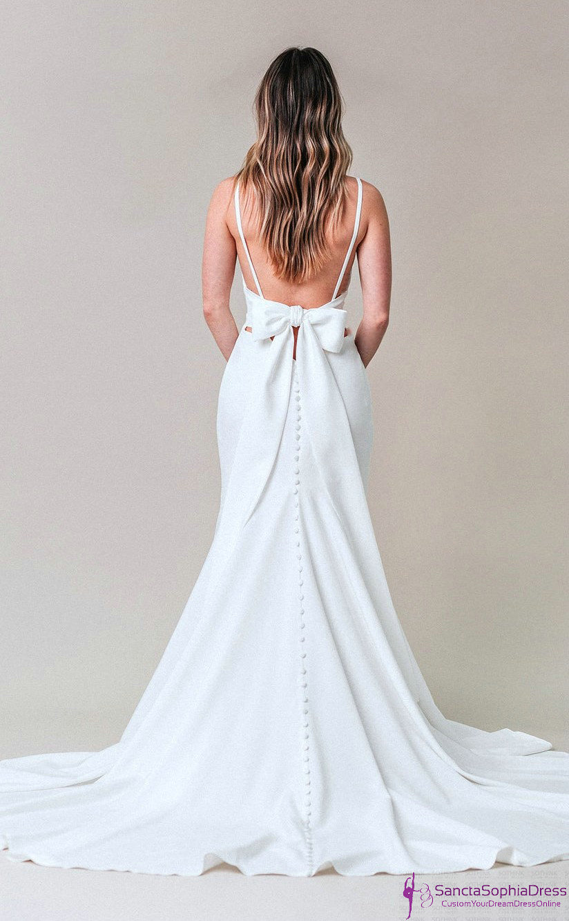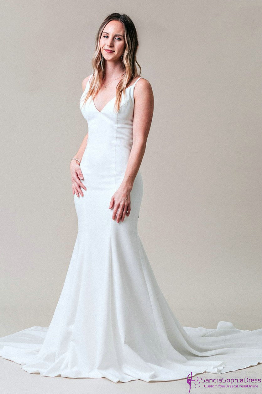 Spaghetti Straps Fit and Flare Wedding Dress,Designer's Informal Wedding Dress