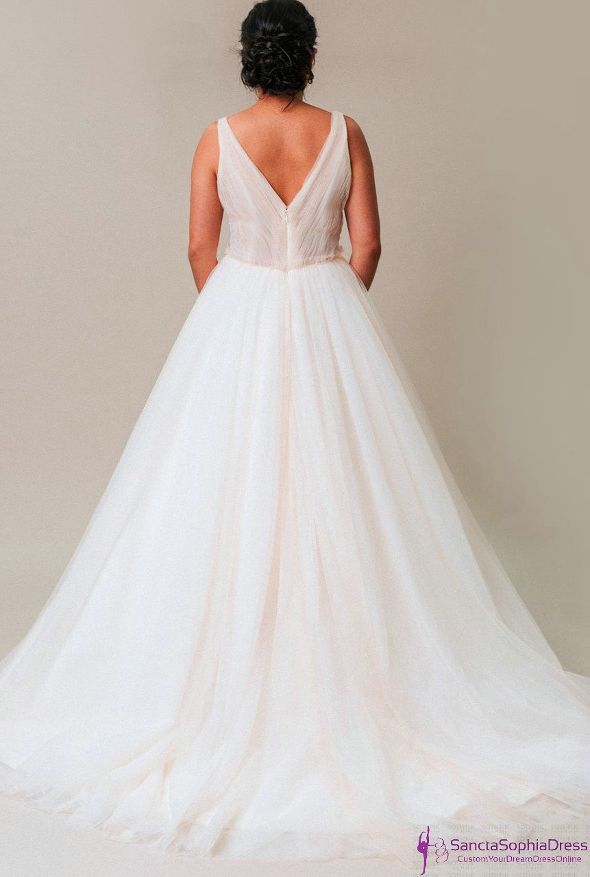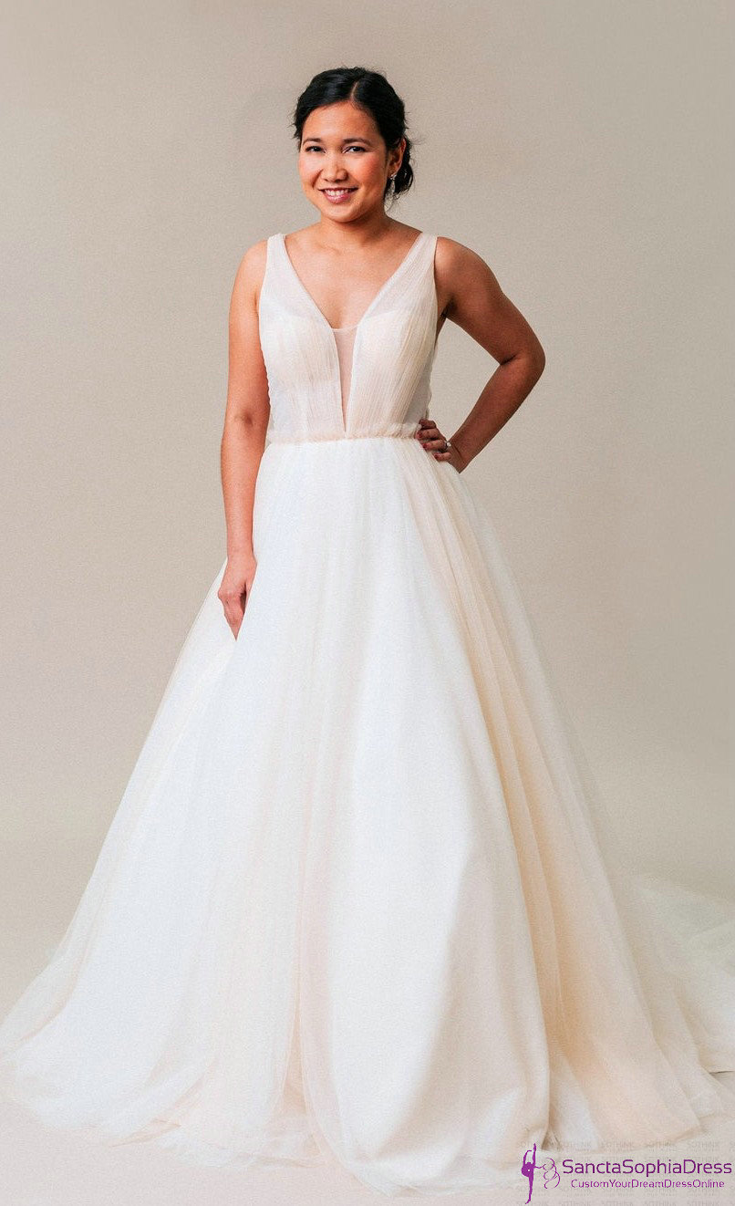 A line Plus Size Wedding Dress,V-back Curvy Wedding Dress