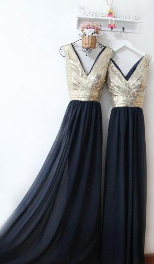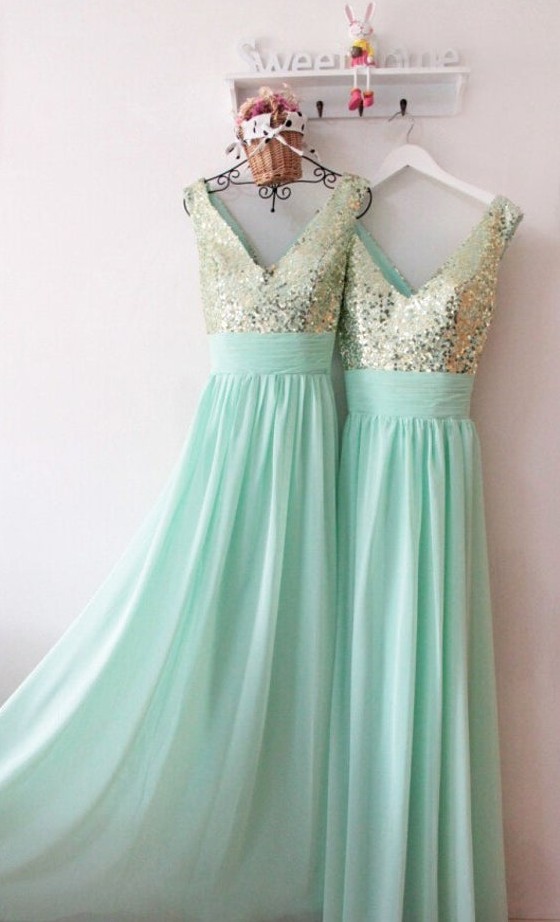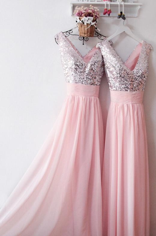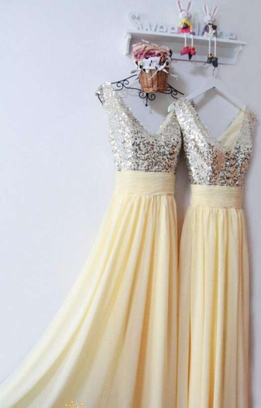 V-neckline Sequins Wedding Party Dress