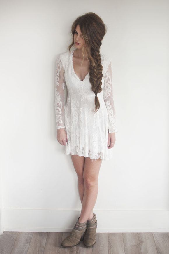 Knee length Wedding Dress,Boho Lace Long Sleeve Wedding Dress