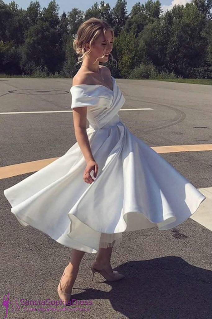 Short Wedding Dress,Off Shoulder Sleeve White Party Dress