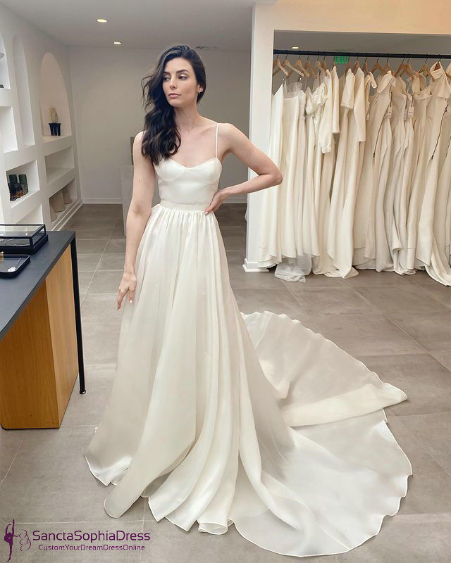 Square Neckline Cream Wedding Dress