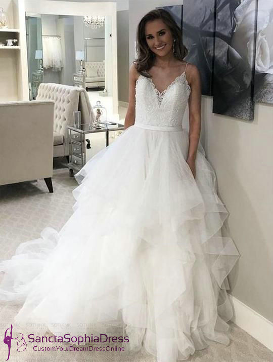Ruffle Skirt Spaghetti Straps Summer Wedding Dress