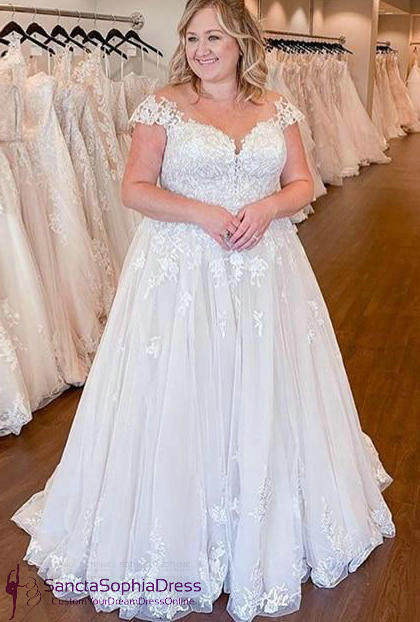 Plus Size Off Shoulder Sleeve Summer Wedding Dress