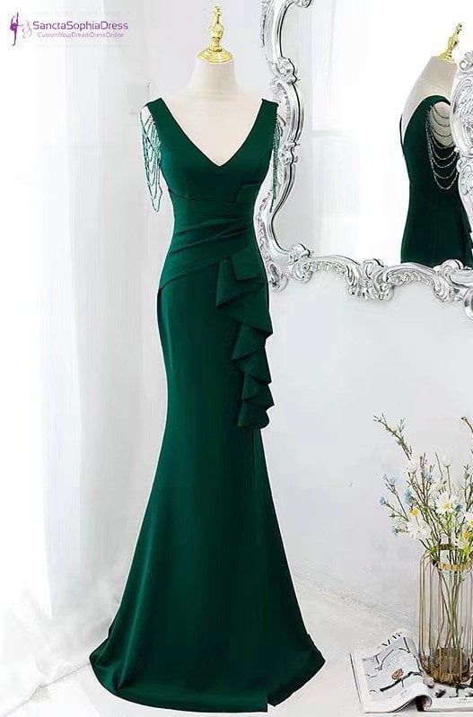 Fit and Flare Deep Green Wedding Party Dress