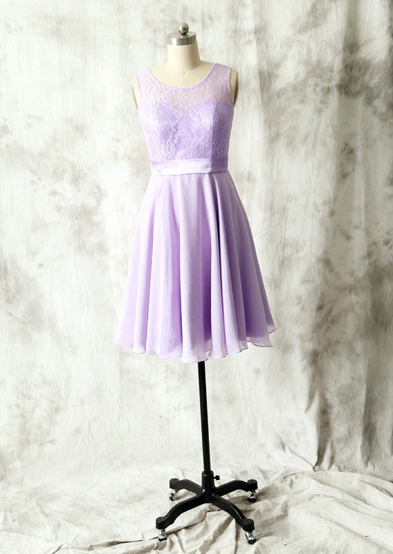 Knee Length V-back Lavender Lace Bridesmaid Dress