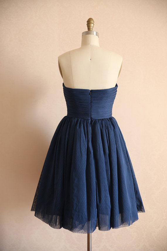 Knee length Navy Blue Bridesmaid Dress.Strapless Homecoming Dress